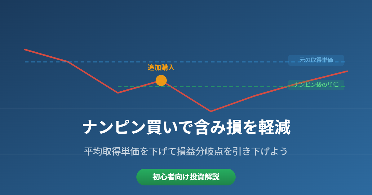 「含み損が出ている株を安く買い増して、平均取得単価を下げる」——これが「ナンピン買い」の基本的な考え方です。うまく機能すれば損益分岐点を下げて早期回復を狙えますが、間違えると損失を拡大させる諸刃の剣でもあります。正しい使い方と注意点を初心者向けに解説します。