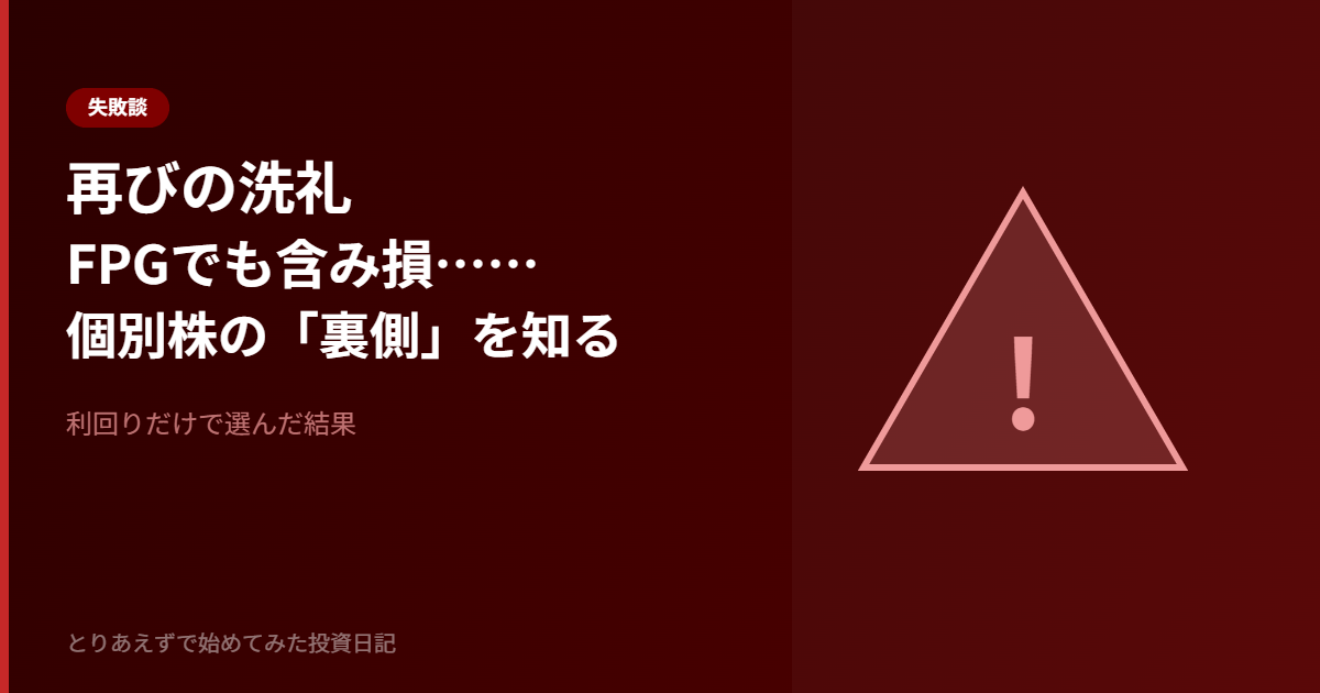 ダイドーリミテッドで痛い目を見たのに、同じ失敗を繰り返してしまいました😅 今度はFPG(エフピージー)という銘柄で再び含み損を抱えることに。「同じ失敗は二度としない」と言いながら同じ罠にハマる——そんなリアルな体験と、個別株の「裏側」を知ることの大切さを正直に書きます。