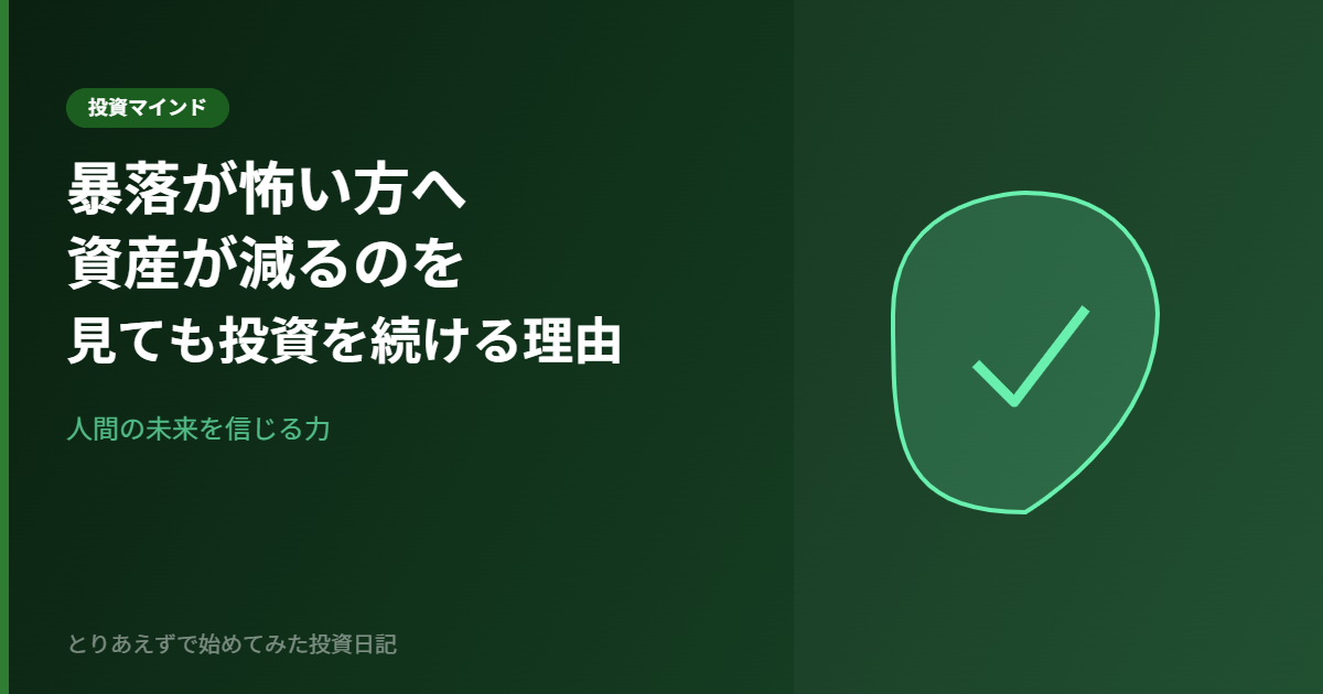 暴落が怖い気持ちは、投資を続けていても消えるものではありません。それでも「人間の未来」への信頼と、積立という「仕組み」があれば、怖さと折り合いをつけながら投資を続けることができます。私自身、まだ完全に慣れてはいませんが、それでいいと思っています。